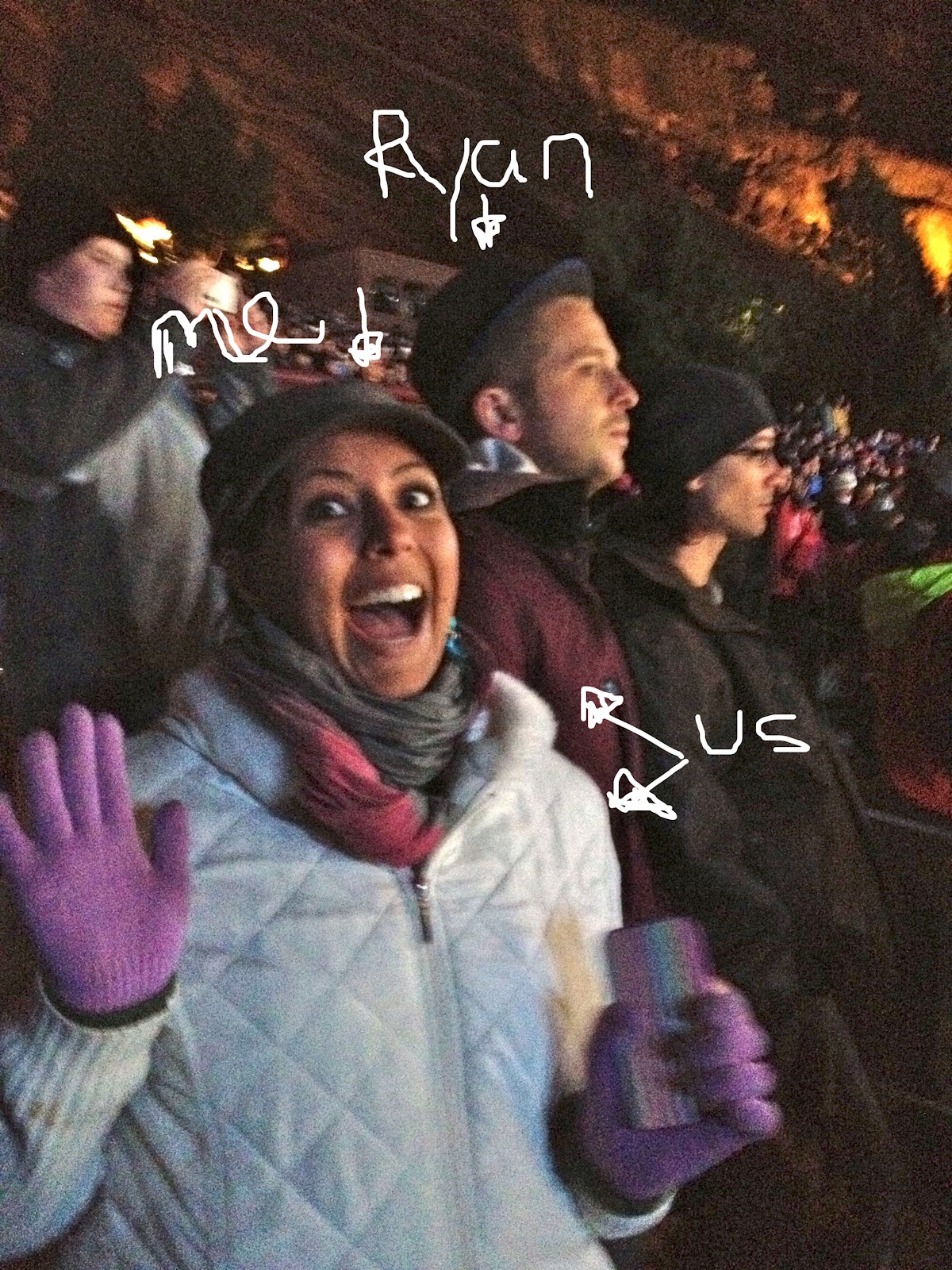 It's at this time I had a very interesting person appeared next to me and asked if the seats next to me were available. I replied with the affirmative and proceeded to immediately remove our ponchos from the area requested. As I look up and get a good look at the male who was speaking to me I recognize that is was none other than Ryan Tedder, most known for being the lead singer of One Republic. To me, this was a HUGE deal. I do a little freak out inside my head, on the outside I was keeping my cool, as demonstrated in the picture below.